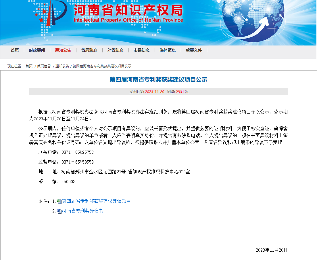 河南省專利獎2017年由河南省政府設立,該獎項是獎勵對促進本省經濟和社會發展具有突出貢獻的專利,是我省知識產權領域展示先進、表彰先進、激勵先進的重要獎項,是激勵自主創新、激發人才活力、營造良好創新環境的一項重要舉措。
