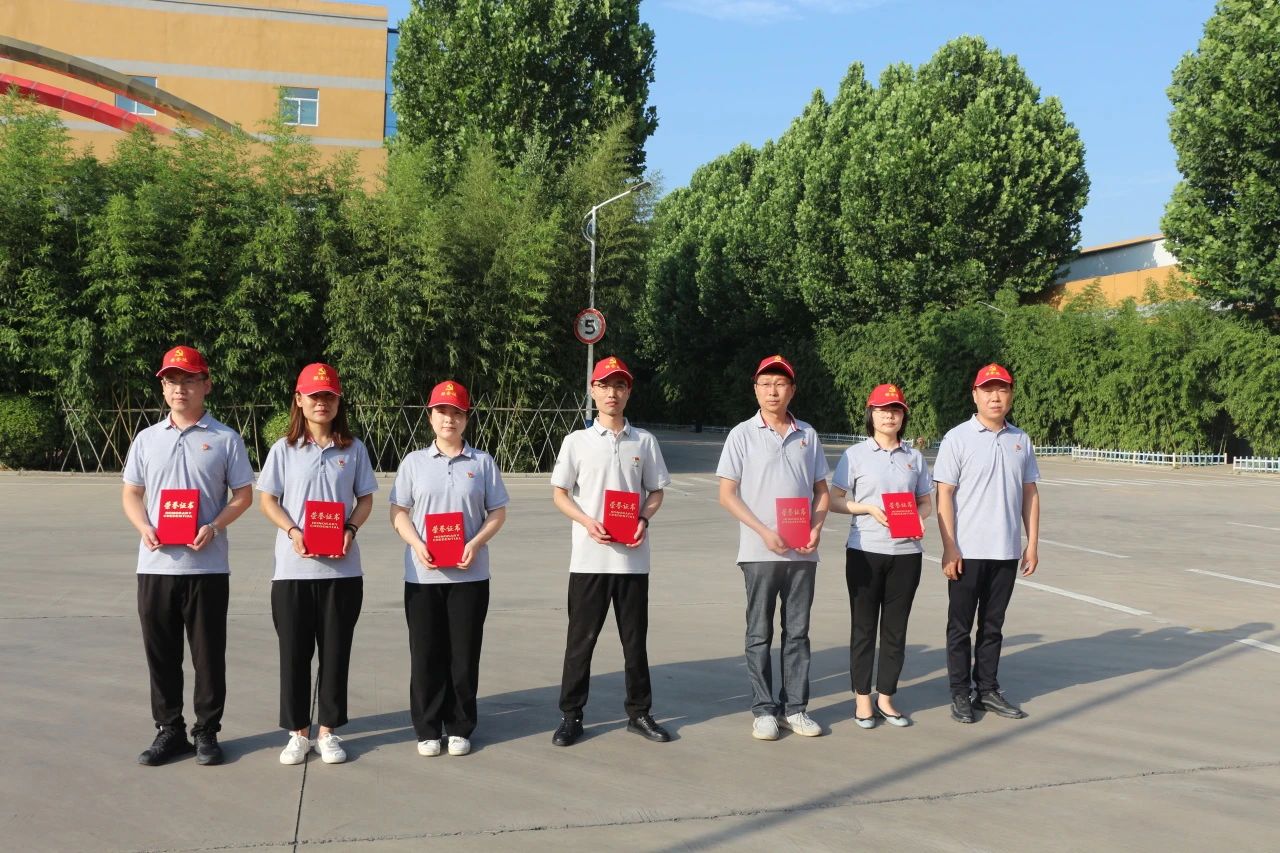 在焦海濤同志的帶領(lǐng)下,全體人員高舉右拳,高聲朗讀員工誓詞和行為準則,伴隨著《沒有共產(chǎn)黨就沒有新中國》激昂奮進的歌聲,全體人員列隊出發(fā)。